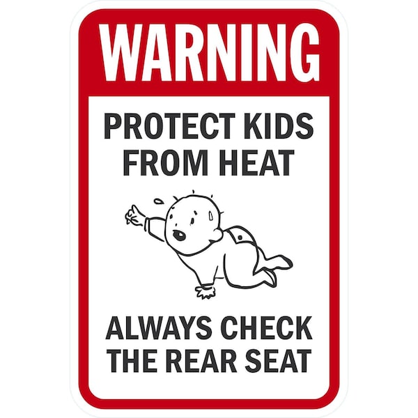 Warning Protect Kids From Heat Always Check The Rear, 12x18, Engineer Grade, White