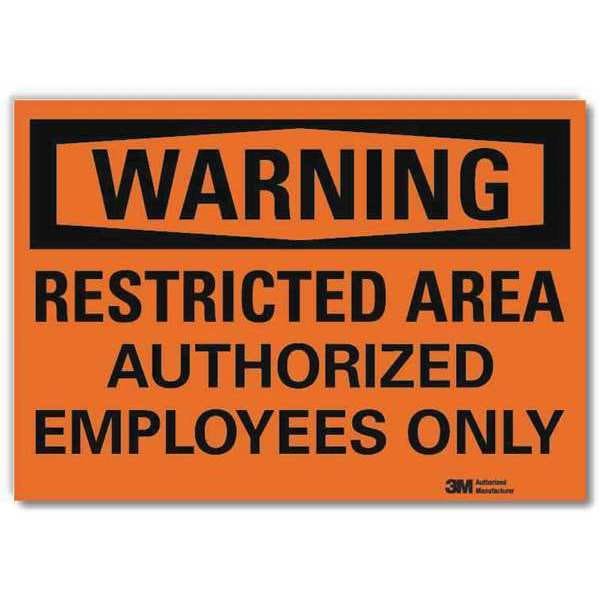 Warning, Restricted Area Authorized Employees Only, 7 in W x 5 in H, Horizontal Rectangle