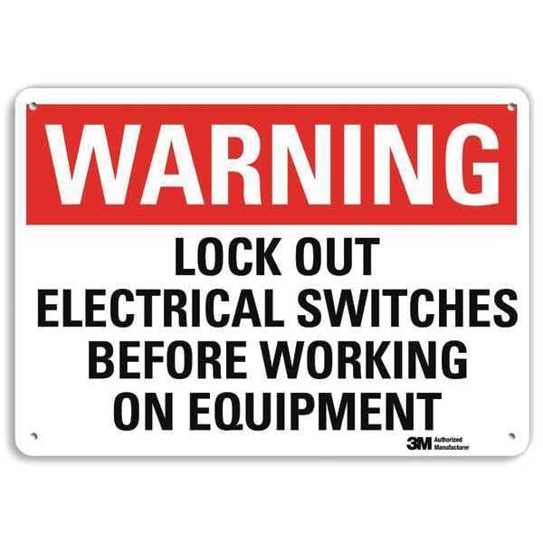 Warning Sign, Horizontal Rectangle, Number of Printed Sides 1, English, Sign Format Traditional OSHA, Sign Legend Lock Out Electrical Switches Before Working On Equipment, Sign Legend Background Color White, Sign Legend Style Text