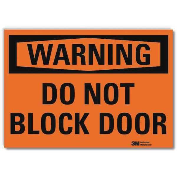 Warning Sign, Horizontal Rectangle, Number of Printed Sides 1, English, Sign Legend Do Not Block Door, Sign Legend Background Color Orange, Sign Legend Style Text