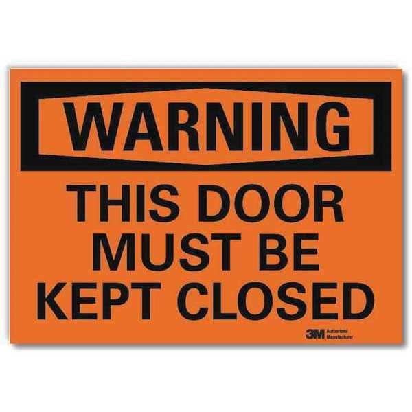 Warning Sign, Horizontal Rectangle, Number of Printed Sides 1, English, Sign Format Traditional OSHA, Sign Legend This Door Must Be Kept Closed, Sign Legend Background Color Orange, Sign Legend Style Text