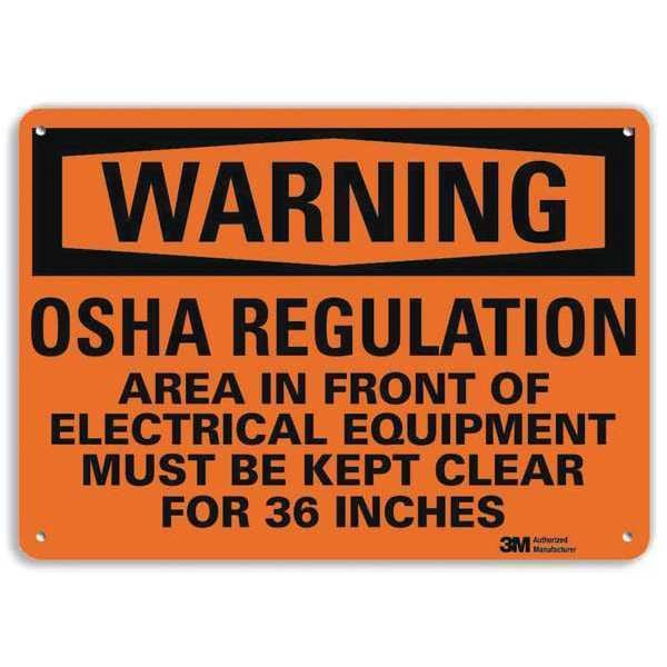 Warning Sign, Vertical Rectangle, Number of Printed Sides 1, English, Sign Format Traditional OSHA, Sign Legend Osha Regulation Area In Front Of Electrical Equipment Must Be Kept Clear For 36 Inches, Sign Legend Background Color White, Sign Legend Style Text