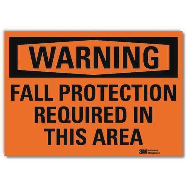 Warning Sign, Vertical Rectangle, Number of Printed Sides 1, English, Sign Format Traditional OSHA, Sign Legend Fall Protection Required In This Area, Sign Legend Background Color Orange, Sign Legend Style Text