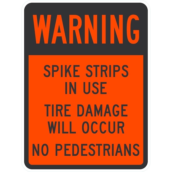 Warning Spike Strips In Use Tire Damage Will, 18x24, Engineer Grade, Orange