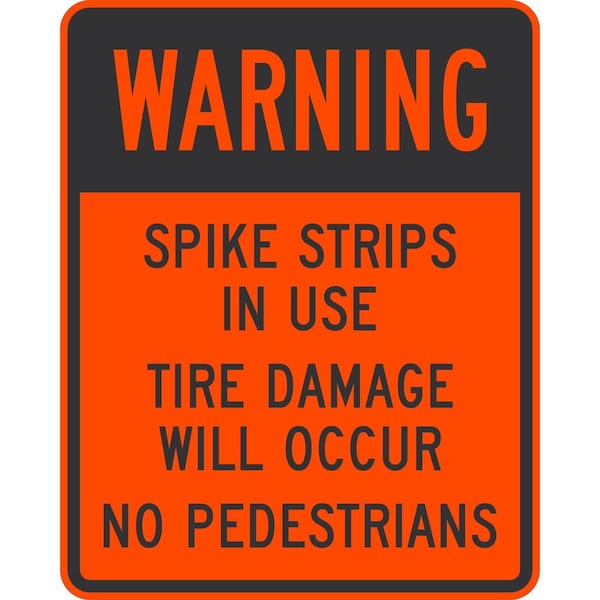Warning Spike Strips In Use Tire Damage Will, 24x30, High Intensity Prismatic, Orange