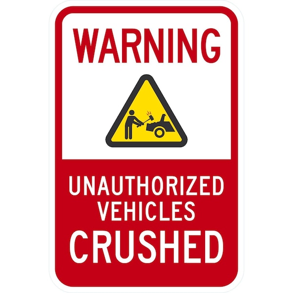 Warning, Unauthorized Vehicles Crushed with Graphic, 12x18, High Intensity Prismatic, White