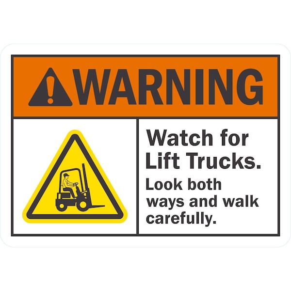 Warning Watch For Lift Trucks. Look Both Ways, 10x7, Non-Reflective, White