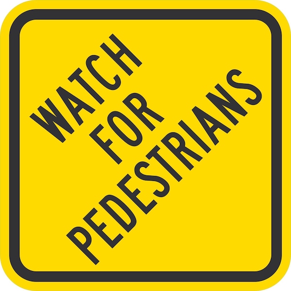 Watch For Pedestrians, 12x12, Engineer Grade, Yellow