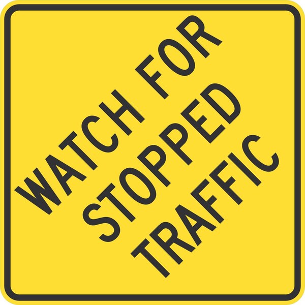 Watch For Stopped Traffic, 30x30, Diamond Grade, Yellow