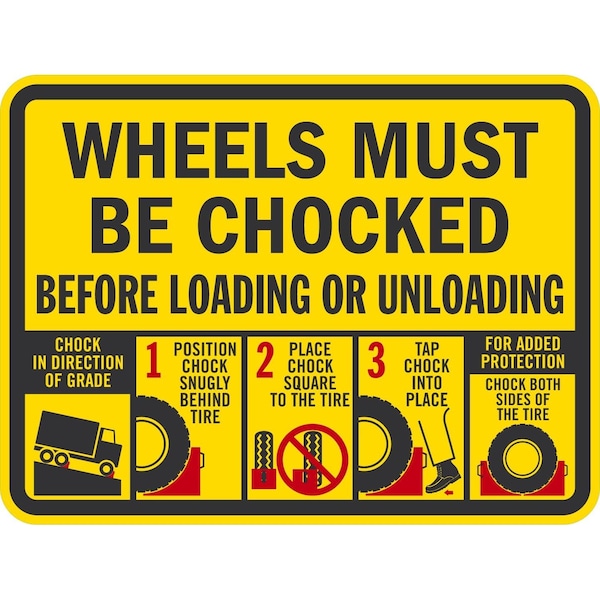 Wheels Must Be Chocked Before Loading Or Unloading/Steps 1, 2, 24x18, Engineer Grade, White