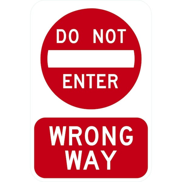 Wrong Way with Do Not Enter Sym, 12x18, Engineer Grade, White