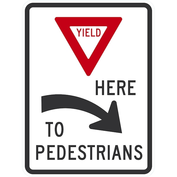 (Yield Sym) Here ( Right Arrow) To Pedestrians, 18x24, Engineer Grade, White