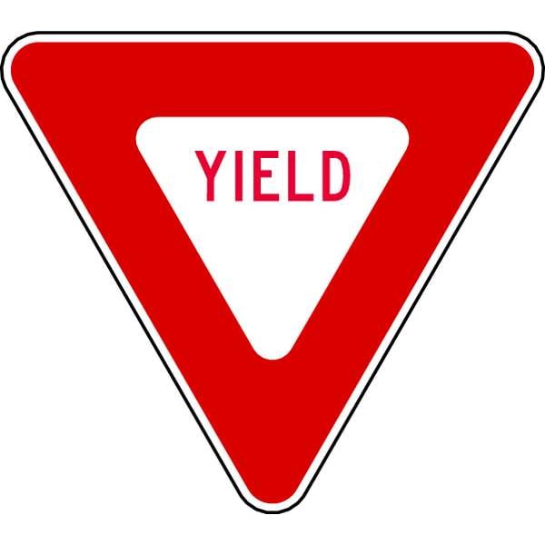 Yield Traffic Sign, 12 in Height, 12 in Width, Aluminum, Triangle, English