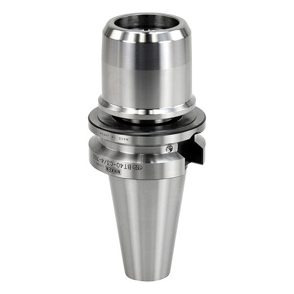 Milling Chuck, Taper Size BT50, Hole Dia. 3/4 in, Nose Dia. 1.8900 in, Collet Series KM3/4, Projection 4.133 in, Coolant Fed Coolant Through, Bore Depth 2.0800 in to 3.1500 in, Clamping Range 1/8 in to 3/4 in, Features 140 Percent More Bearing Surface than Competitor Milling Chucks;For Quiet and Stable Heavy Milling;Nikken Patented Design;Nut Body Contact, Nose Clamping and Anti-Vibration Mechanism;Thick Body and Internal Slots Provide Extremely Strong Chucking Torque and Rigidity
