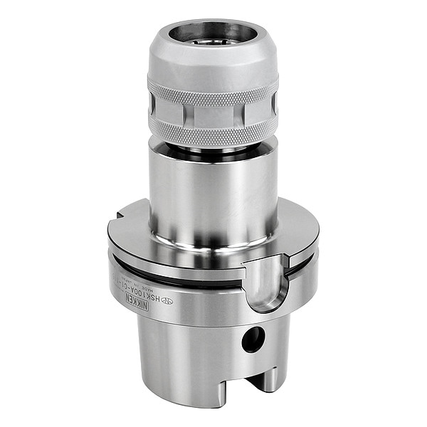 Milling Chuck, Taper Size H63, Hole Dia. 1 in, Nose Dia. 2.3600 in, Collet Series KM1, Projection 2.972 in, Coolant Fed Coolant Through, Bore Depth 3.15 in, Clamping Range 1/8 in to 1 in, Features 140 Percent More Bearing Surface than Competitor Milling Chucks;For Quiet and Stable Heavy Milling;Nikken Patented Design;Nut Body Contact, Nose Clamping and Anti-Vibration Mechanism;Thick Body and Internal Slots Provide Extremely Strong Chucking Torque and Rigidity