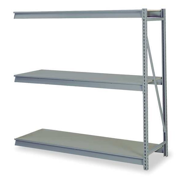 Bulk Storage Rack, Shelving Type Add-On, Overall Width 48 in, Overall Depth 24 in, Overall Height 72 in, Decking Material Particleboard, No. of Shelves 3, Shelf Capacity 3,300 lb, Load Capacity 10,000 lb, Shelving Frame Material Steel, Dove Gray, Finish - Shelving and Racks Powder Coated, Shelf Adjustments 1 1/2 in, Shelving Gauge 14, Shelving Post Gauge 14, Standards Greenguard Gold Certified, Includes (2) Front to Back Support Per Level, (6) Beams, Particle Board Decking, Welded Upright