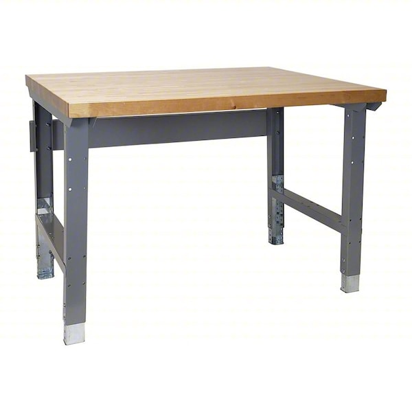 Adjustable Workbench, Height Adjustability Adjustable Height, Top Material Hardwood, Assembly Unassembled, Color Gray, Frame Material Steel, Leg Type Panel Leg, Maximum Adjustable Height 44 1/4 in, Minimum Adjustable Height 32 1/4 in, Non-Metal Top Thickness 1 1/2 in, Number of Cabinets 0, Number of Drawers 1, Number of Knockouts 0, Included Components Stringer, Number of Outlets 0, Overall Depth 30 in, Overall Fixed Height 44 1/4 in, Overall Load Capacity 5,000 lb, Overall Width 60 in