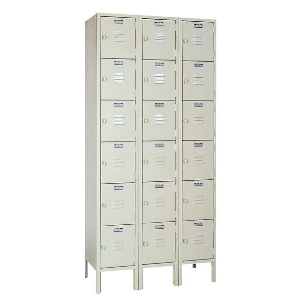 Box Locker, 36 in W, 18 in D, 78 in H, (3) Wide, (6) Tier, Putty