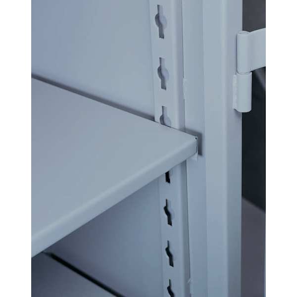 Storage Cabinet Shelf, Color Gray, Load Capacity 1,450 lb, Number of Shelves 1, Overall Depth 21 1/2 in, Overall Width 46 1/4 in, Product Type Shelf, Adjustable Yes, Compatible Manufacturer Model Number 1120, 1120DP, 1120V, 1147, Compatible Product Type Storage Cabinets, Finish Powder Coated, Includes (4) Nuts and Bolts, Includes Mounting Hardware Yes, Material Steel, Material Thickness 14 ga