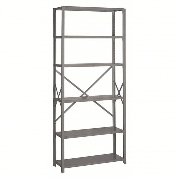 Metal Shelving, Gray, Overall Depth 18 in, Overall Height 84 in, Overall Width 36 in, Shelf Style Solid, Shelving Material Steel, Shelving Gauge 20, Includes (2) Upright Assemblies, (6) Shelves, Brace, Shelf Clips
