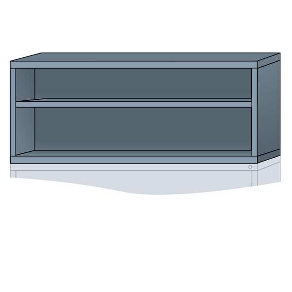 Modular Shelf Cabinet, Base Type Frame, Body Panel Type Solid, Cabinet Color Gray, Cabinet Material Steel, Cabinet Storage Components Shelves, Door Type No Door, Frame Assembled Assembled, Mobility Stationary, Number of Shelves 2, Overall Depth 28 1/4 in, Overall Height 25 in, Overall Width 59 3/4 in