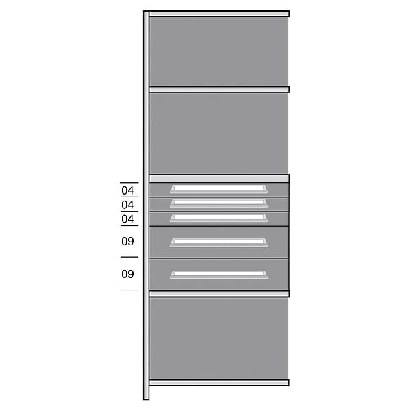 Shelf, Gray, Powder Coated, Frame Material Steel, Load Capacity per Shelf 850 lb, Whole Unit Load Capacity 2,500 lb, Number of Shelves 5, Overall Depth 18 in, Overall Height 84 in, Overall Width 36 in, Shelf Style Solid, Shelving Material Steel, Shelving Gauge 20 ga, Includes (2) Closed Uprights, (5) Shelves, Back Sheet, Drawer Kit with Brackets