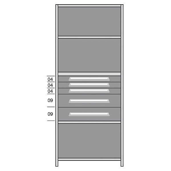 Shelf, Gray, Powder Coated, Frame Material Steel, Load Capacity per Shelf 800 lb, Whole Unit Load Capacity 2,500 lb, Number of Shelves 5, Overall Depth 24 in, Overall Height 84 in, Overall Width 36 in, Shelf Style Solid, Shelving Material Steel, Shelving Gauge 20 ga, Includes (2) Closed Uprights, (5) Shelves, Back Sheet, Drawer Kit with Brackets
