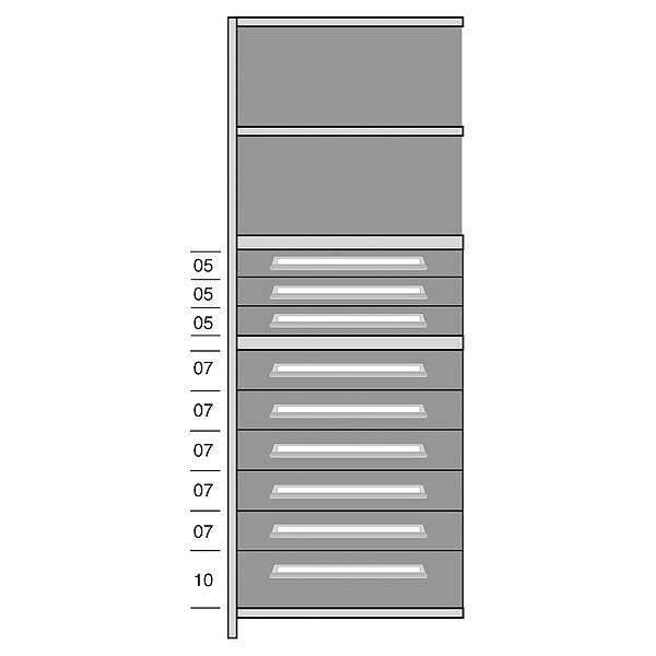 Shelf, Gray, Powder Coated, Frame Material Steel, Load Capacity per Shelf 850 lb, Whole Unit Load Capacity 2,500 lb, Number of Shelves 5, Overall Depth 18 in, Overall Height 84 in, Overall Width 36 in, Shelf Style Solid, Shelving Material Steel, Shelving Gauge 20 ga, Includes (2) Closed Uprights, (5) Shelves, Back Sheet, Drawer Kit with Brackets