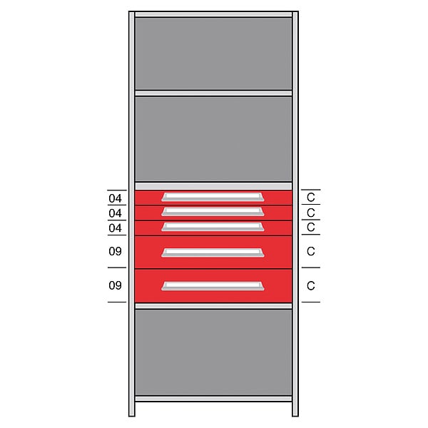Shelf, Gray, Frame Material Steel, Load Capacity per Shelf 500 lb, Whole Unit Load Capacity 2,500 lb, Number of Shelves 5, Overall Depth 24 in, Overall Height 84 in, Overall Width 36 in, Shelf Style Solid, Includes (2) Closed Uprights, (5) Shelves, Back Sheet, Drawer Kit with Brackets