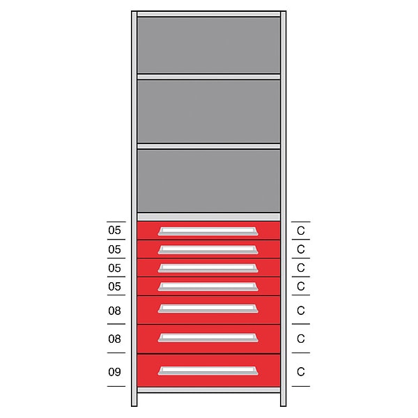 Shelf, Gray, Frame Material Steel, Load Capacity per Shelf 500 lb, Whole Unit Load Capacity 2,500 lb, Number of Shelves 5, Overall Depth 18 in, Overall Height 84 in, Overall Width 36 in, Shelf Style Solid, Includes (2) Closed Uprights, (5) Shelves, Back Sheet, Drawer Kit with Brackets