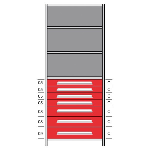 Shelf, Gray, Frame Material Steel, Load Capacity per Shelf 500 lb, Whole Unit Load Capacity 2,500 lb, Number of Shelves 5, Overall Depth 24 in, Overall Height 84 in, Overall Width 36 in, Shelf Style Solid, Includes (2) Closed Uprights, (5) Shelves, Back Sheet, Drawer Kit with Brackets