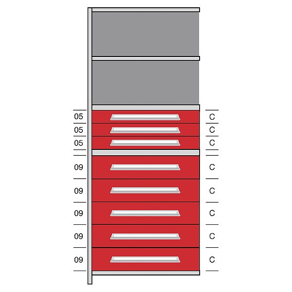 Shelf, Gray, Frame Material Steel, Load Capacity per Shelf 500 lb, Whole Unit Load Capacity 2,500 lb, Number of Shelves 5, Overall Depth 24 in, Overall Height 84 in, Overall Width 36 in, Shelf Style Solid, Includes (2) Closed Uprights, (5) Shelves, Back Sheet, Drawer Kit with Brackets
