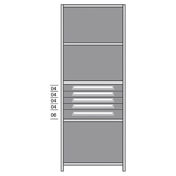 Shelf, Dove Gray, Powder Coated, Frame Material Steel, Load Capacity per Shelf 850 lb, Whole Unit Load Capacity 2,500 lb, Number of Shelves 5, Overall Depth 18 in, Overall Height 84 in, Overall Width 36 in, Shelf Style Solid, Shelving Material Steel, Shelving Gauge 20 ga, Includes (2) Closed Uprights, (5) Shelves, Back Sheet, Drawer Kit with Brackets
