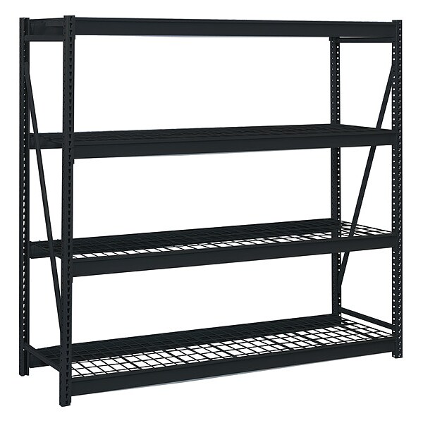 Bulk Storage Rack, Shelving Type Starter, Overall Width 72 in, Overall Depth 24 in, Overall Height 72 in, Decking Material Steel Wire, No. of Shelves 3, Shelf Capacity 3300 lb, Load Capacity 10,000 lb, Shelving Frame Material Steel, Black, Finish - Shelving and Racks Powder Coated, Shelf Adjustments 1-1/5 in, Shelving Gauge 14, Shelving Post Gauge 14, Includes (2) Welded Uprights, (8) Beams, (8) Front to Back Supports, Wire Decking