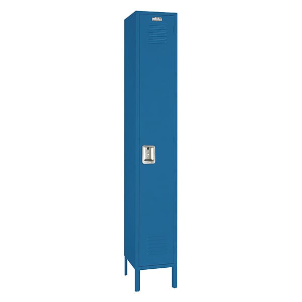 Wardrobe Locker, Audit Trail Storage None, Frame Assembled Assembled, Number of Tiers 1, Number of Units Wide 1, Door Type Louvered, Includes Number Plates Yes, Locker Color Blue, Lock Type Padlock Hasp, Overall Depth 12 in, Overall Height 66 in, Overall Width 12 in, Handle Type Recessed Lift, Includes Hanging Rod No, Locker Finish Powder Coated, Locker Material Steel, Opening Depth 12 in, Opening Height 60 in, Opening Width 12 in, Panel Material Thickness 24 ga, Door Material Thickness 16 ga