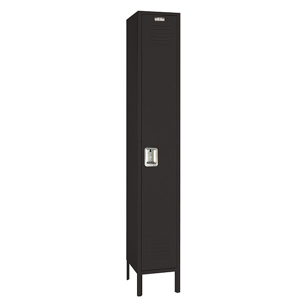 Wardrobe Locker, Audit Trail Storage None, Frame Assembled Assembled, Number of Tiers 1, Number of Units Wide 1, Door Type Louvered, Includes Number Plates Yes, Locker Color Black, Lock Type Padlock Hasp, Overall Depth 18 in, Overall Height 78 in, Overall Width 18 in, Handle Type Recessed Lift, Includes Hanging Rod Yes, Locker Finish Powder Coated, Locker Material Steel, Opening Depth 18 in, Opening Height 72 in, Opening Width 18 in, Panel Material Thickness 24 ga, Door Material Thickness 16 ga