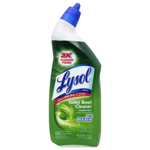 Lysol Toilet Bowl Cleaner with Bleach brightens, cleans, and disinfects. The thick formula clings to the bowl, brighteining your toilet as it cleans and disinfects. The angeled bottle targets hard-to-reach areas, icnluding under the rim, leaving the entire bowl sparkling clean, deodorized, and disinfected. Kills 99.9% of viruses and bacterial. 24 oz. 12 bottles per case. Specifications Safety: No Choke Hazard Allergens: Contains No Allergens Capacity: 12-24 oz