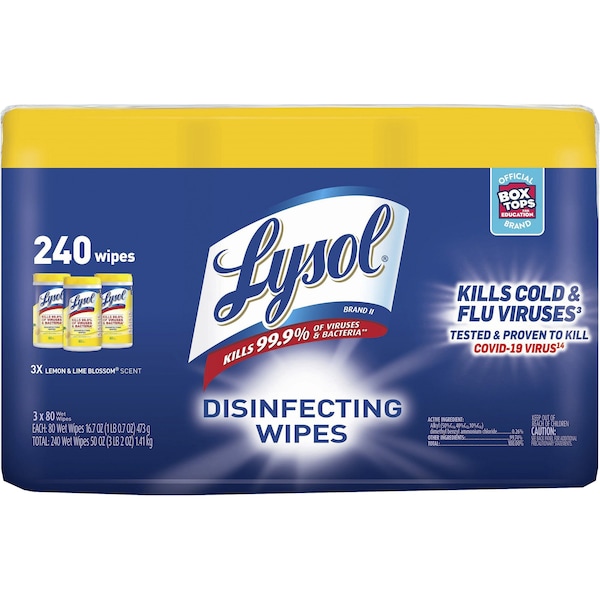 Lemon/Lime Disinfecting Wipes, Canister, Lemon; Lime Blossom, White, 240 PK