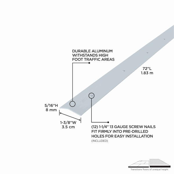 - • For use in doorways, room entryways or other locations where two unequal height flooring surfaces meet