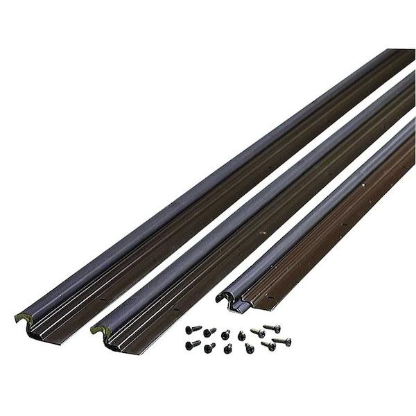 Compression weather strip, constructed of aluminum stop with v shaped foam and vinyl seal. Approved for commercial or residential use. Screw fasteners for wood or metal frame doors. Fasteners included. Install on doorstop. Slotted fastener holes ensure easy installation and adjustment. Includes two 7 ft pieces and one 3 ft piece.
