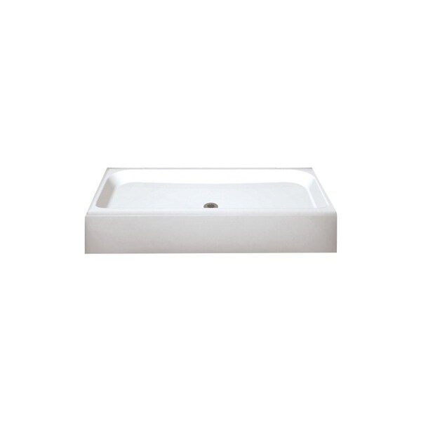 Integral tiling flange, center drain, ideal base for wall surround or ceramic wall applications. White. 5-yr warranty. Glossy white gelcoat finish.