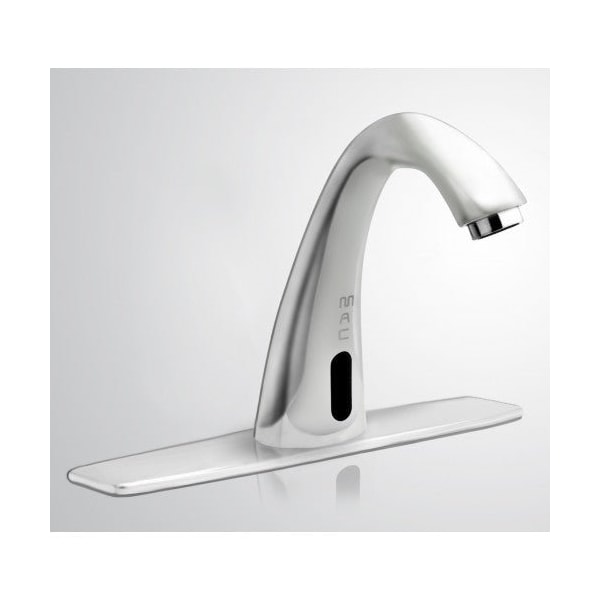 Faucet with 8 in. Deck Plate shown here in Chrome finish. Available in 22 finishes. This Sleek Design faucet is an exquisite work of art which combines Great Style with Hands free Functionality. It is ideal for bathroom applications where Touchless, Hands free faucets are an intricate component of the room's overall design element. This unique faucet is also available with optional matching water mixing valve and matching soap dispenser. However, don't let the good looks fool you. The model FA444-17 is a heavy duty faucet, that is designed for heavy traffic applications which features: Solid Brass Faucet Construction, Triple polish chrome plating process, Easy Clean out particle filter, Dual Water Source Ready. Your purchase will include: Faucet, FA444 Automator, Stainless Steel Braided Hose, 8 in. Deck Plate, Mounting Hardware, 4 AA Batteries Pre-installed. 100% Q.C every faucet undergoes 9 point inspection before leaving the factory. Please Note: Drain Sold Separately.