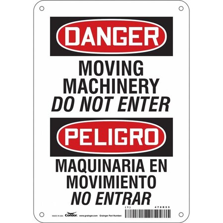 Safety Sign, 10 in Height, 7 in Width, Aluminum, Horizontal Rectangle, English, Spanish, 478R55