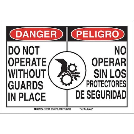 OSHA Decal, Do Not Operate This Machine W/O Guards In Place, 7in X 5in Decal, 5" H, 7" W, Landscape