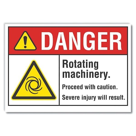 Rotating Machinery Danger Reflective Label, 5 in Height, 7 in Width, Reflective Sheeting, English