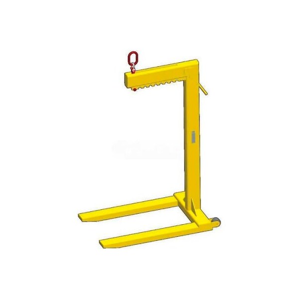 Wheeled multiple adjustment bale lift pallet lifter - 4000 lb. Capacity features: wheeled pallet lifter converts crane or hoist into aerial forklift rear guide for operator safety fork length is 36", fork spacing is 25" multiple lift bale adjustments manufactured to exceed all asme b30.20 and osha regulations all lifting equipment individually proof loaded per osha requirements rfid tracking chip equipped.
