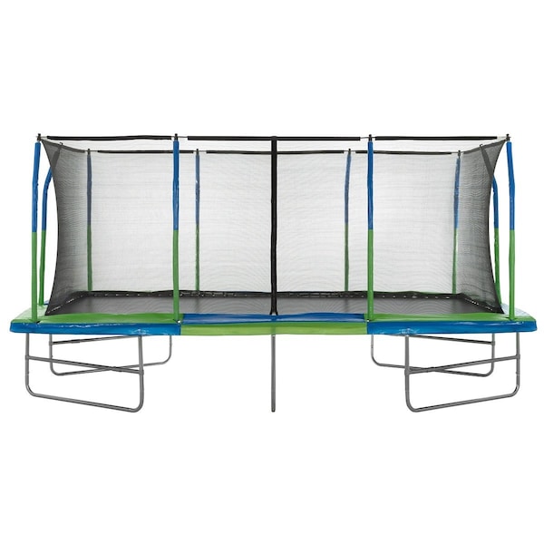 Bring bouncing fun to your backyard with the Machrus Upper Bounce Rectangle trampoline for kids and adults. Along with an easy assembly structure, our trampoline jumping mat and trampoline frame, are tested to be UV and water-resistant, offering you a safe and long-lasting fun investment. Our trampoline jumping mat is made of premium PP mesh material having state-of-the-art 8-row stitching. This provides additional security and prevents the mat from tearing, ripping, or deteriorating over time. The top flex pole enclosure system offers amazing stability and durability verses regular poles, in addition, to 108 ultra-bounce heavy-duty galvanized 7" springs for bursting strength and maximum bouncing! The pole foam sleeves are made of strong vinyl material for added comfort and protection. You will enjoy many years of safe fun on your new trampoline with no worries at all. Our trampolines with safety pads are super safe to use and are excellent for any backyard. The thick trampoline safety pad ensures absolute safety for your children. Our trampolines can support up to 500 lbs. of weight. Equipped with high-end galvanized trampoline springs. Machrus Upper Bounce trampolines provide tremendous jumping momentum and bursting strength for a controlled and responsive jumping experience. It features a sturdy metal and spring construction that ensures your child will enjoy years of fun without worrying about breakage. It is the right size for any outdoor/backyard setting. And its jumping surface offers ample space for your little ones to channel all their energy. This trampoline also comes with an in-depth user manual to make assembling more manageable. Let's go out and play!