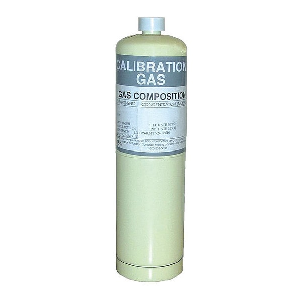 Calibration Gas, CGA Number Not Applicable, Container Type Cylinder, Cylinder Capacity 105 L, Cylinder Diameter 3.2 in, Cylinder Height 12.5 in, For Use With All OEM Gas Detectors, Gas Mixture Carbon Monoxide 100 ppm, Gas Type Carbon Monoxide, Product Type Calibration Gas, Chemical Formula CO, CAS Number 630-08-0, Accuracy +/-5 Percent, Background Gas Air, Calibration Certificate NIST, Cylinder Material Aluminum, Outlet Connection Type C-10, Operating Pressure - Maximum 1,200 psi