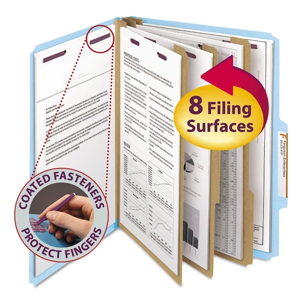 0.4 Cut Eight Section Pressboard Folder with Fastener, Blue - Size Letter