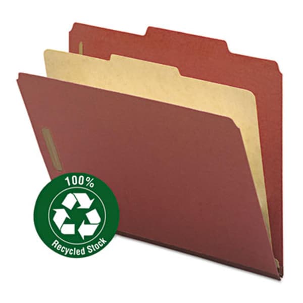 Pressboard Classification Folder, 1 Divider, 2 in. Exp, .4 Cut, Letter, Red, 10PK
